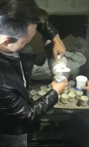 溫暖的紙杯在村民手中傳遞著